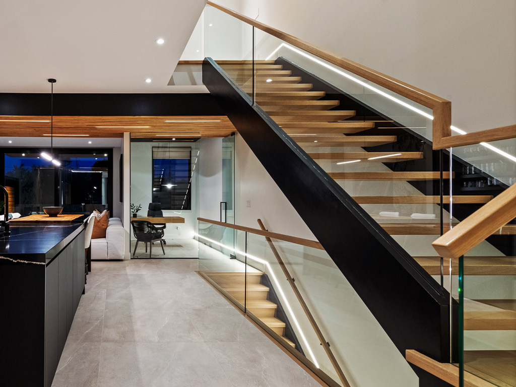 Que vous soyez en construction ou en rénovation, l’éclairage intégré est une façon simple et efficace de transformer un escalier fonctionnel en un élément remarquable.