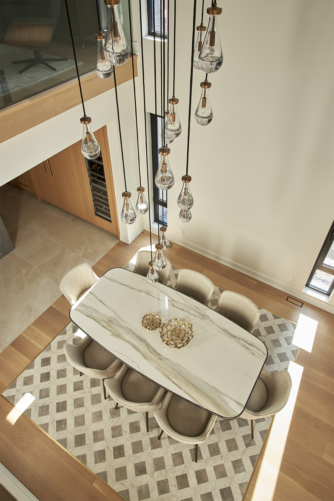 This gorgeous staircase isn’t just a functional element, it’s a statement piece that seamlessly integrates beauty and practicality. Throughout the day, the changing angles of sunlight create an ever-evolving ambiance inviting you to appreciate the interplay of light, form, and materials with every step.